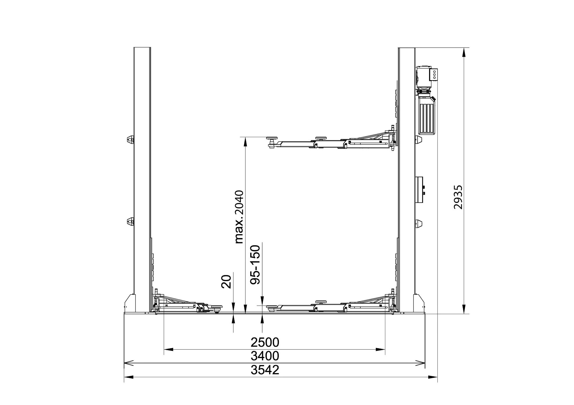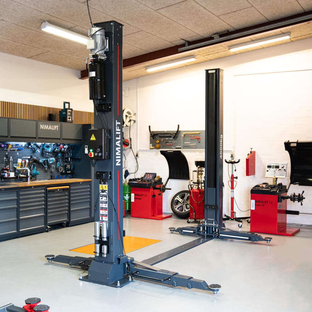 Autoliftens 400V-motor er topmonteret. Det sørger for, at du får mere plads, når du skal udføre dit arbejde. Med en løftehøjde på 2040 mm. er der herved god plads til at klare arbejdet under bilen.