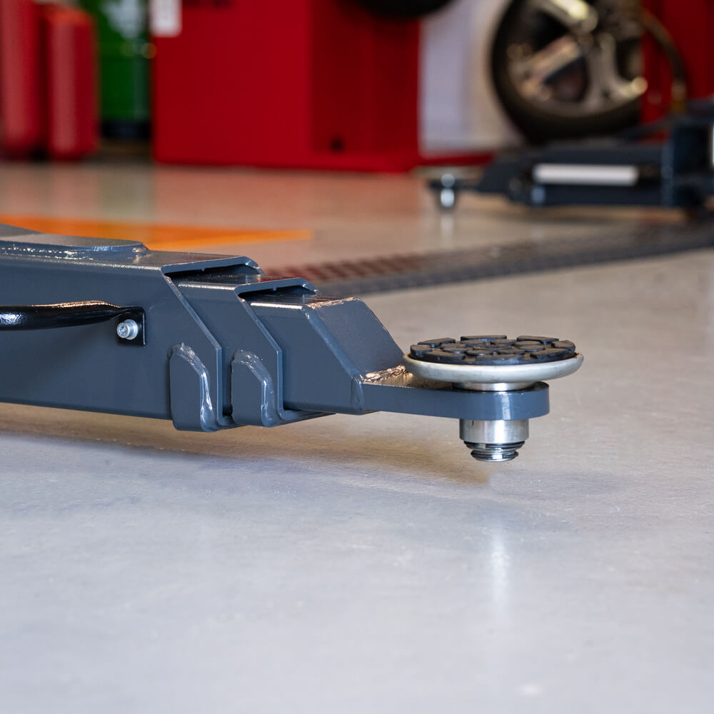 Som standard kommer liften med tredelte arme for og bag begge med skruepads, så du nemt kan ramme de optimale løftepunkter på alle typer biler – selv på små biler som f.eks. en Fiat 500.
