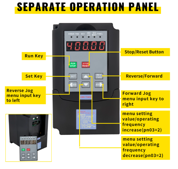 - Output Frequency: 0.1-400 Hz