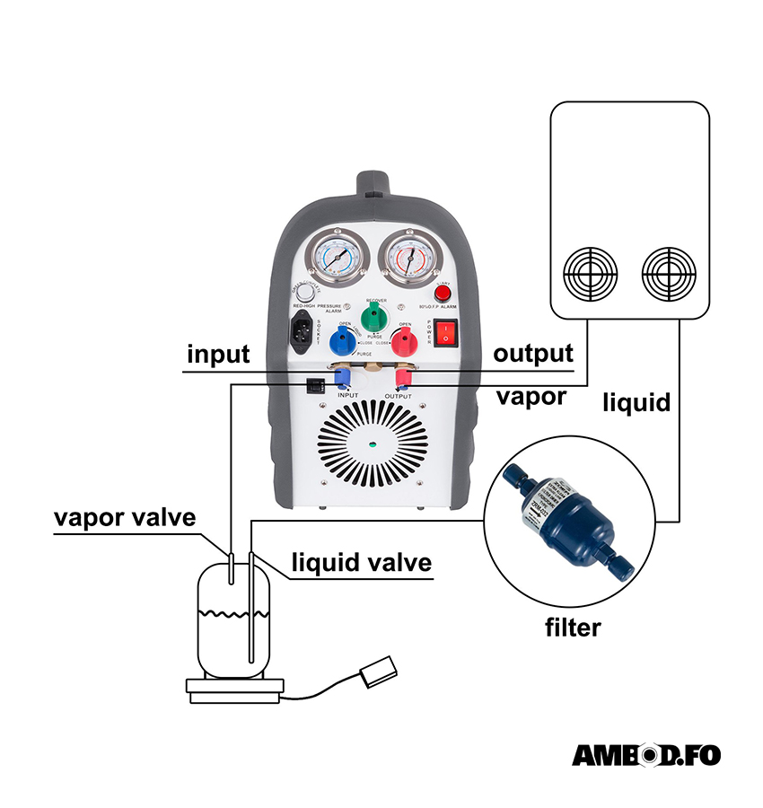 Pumpa til áfylling/tøming av køli evni til hitapumpur oa.