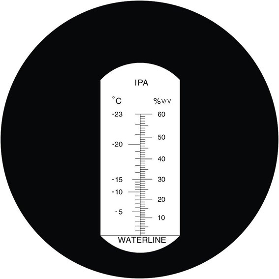 Måling af frostsikringspunkt / blandingsforhold i væsker blandet med IPA-sprit. Anvendes bl.a. til brug for opsætning og servicering af jordvarmeanlæg mv. * Indbygget automatisk temperatur korrektion (ATC) * Skjult kalibreringsskrue sikrer at refraktometeret ikke fejljusteres under brug * Dobbeltled på lyspladen (slutter helt tæt til prismen) * Stor lysfølsomhed.