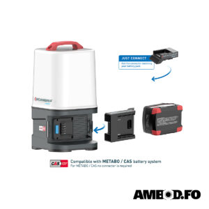 Kann brúka battarí frá Makita, Dewalt, Milwaukee, bosch, Metabo o.a. – Adaptari kann keypast her: