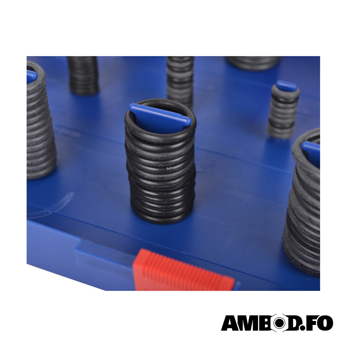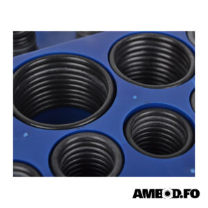 Sortiment við 32 ymiskum sløgum av O-ringum í metriskum støddum.
