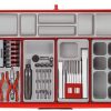 Hetta skápi/arbeiðsborði hevur plast innlegg sum gerð at amboðini liggja sera væl.